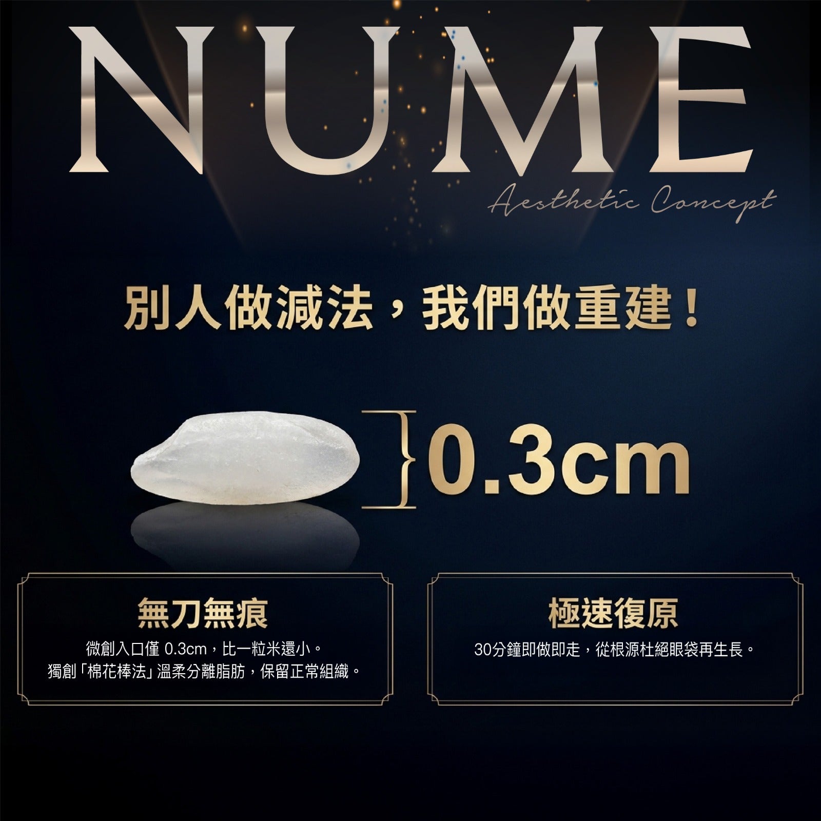 傳統是切掉,而NuMe獨家棉花棒法2.0 是「重建眼周」。